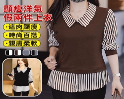 NT$1298新款減齡顯瘦假兩件襯衫,上身遮肚顯瘦修飾身型,百搭不挑人,內搭外穿都好看!詳情