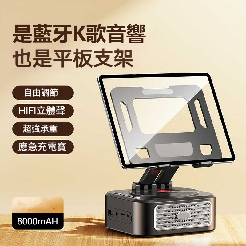 【音響平板支架】藍牙音響+平板支架+充電寶,一機三用!高度角度任意調節,解鎖超舒適的使用姿勢!