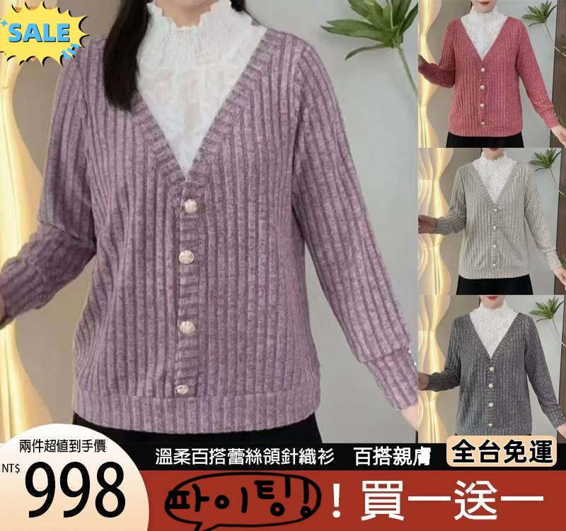 【買一送一】蕾絲領針織衫,超柔軟超漂亮的蕾絲,顏色都超漂亮的,柔軟舒適,洋氣百搭,遮肉顯瘦