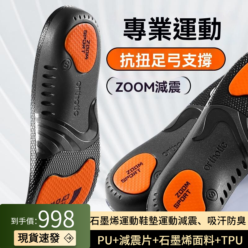 [1]【石墨烯運動鞋墊】運動減震、吸汗防臭(PU+減震片+石墨烯面料+TPU)1入組-NT$998