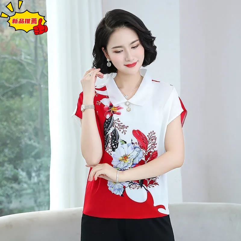 2026新款【時尚印花短袖】設計感小眾襯衣寬鬆百搭短袖小衫娃娃領上衣
