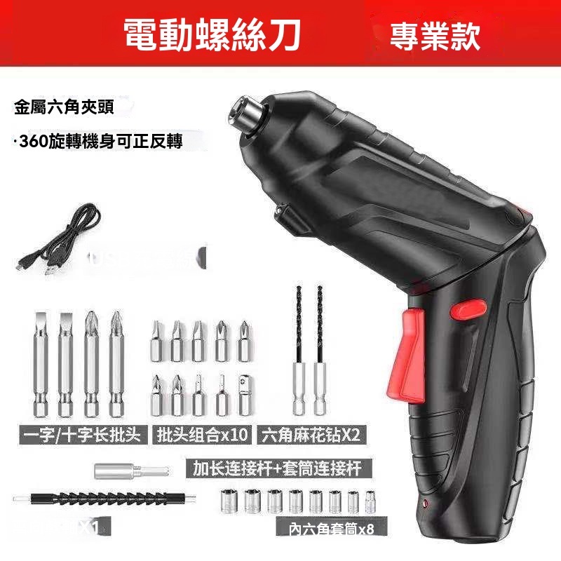[1] 多功能手持電動螺絲刀【靈活高效】專業款 配30件套 NT$1198(免運)