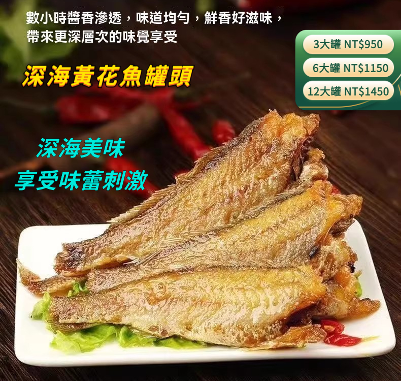[1] 澎湖黃花魚罐頭「深海美味」12大罐 僅需NT$1450(免運)