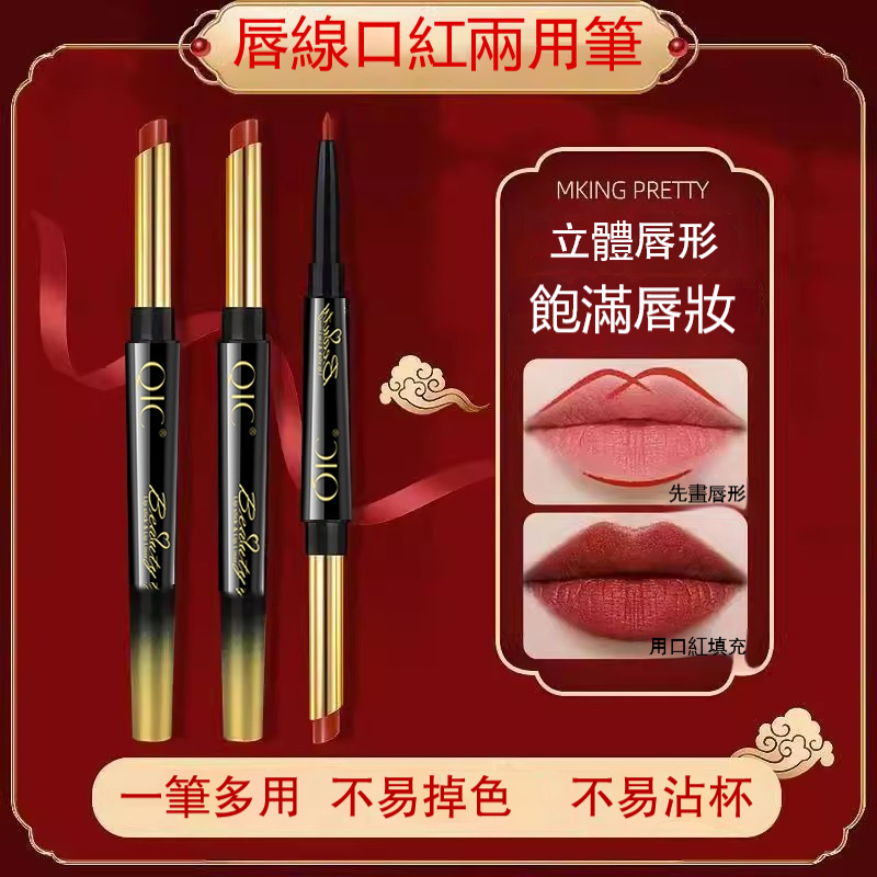 【雙頭口紅唇線筆|畫出飽滿唇形!裸色防水超持久】——勾勒、填色一支搞定,唇妝一整天不脫 線!