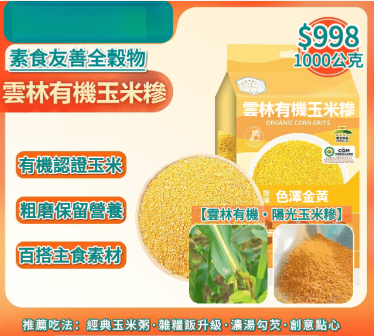 [2]「雲林有機玉米糝,二入組」NT$1298