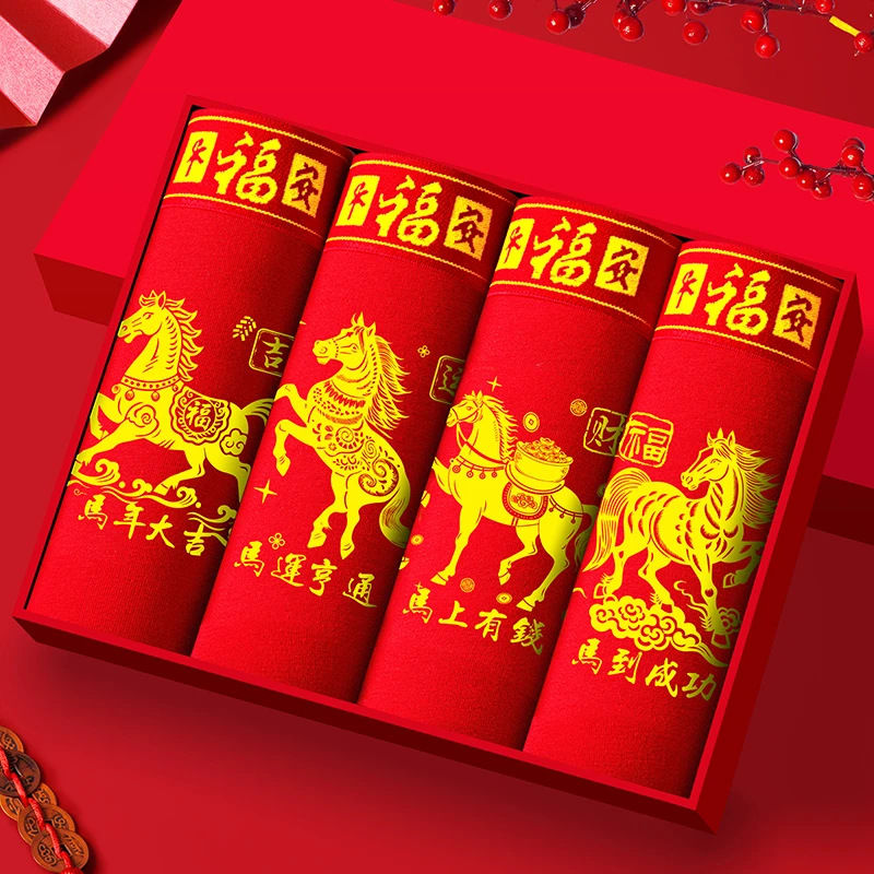 【男士本命年純棉紅內褲】寓意紅紅火火,柔軟細膩又親膚,新年穿紅褲,馬年更出色!純棉面料舒適透氣,穿出自信與好運