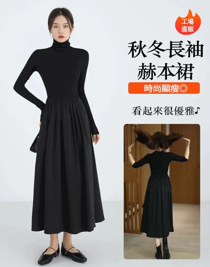 新款顯瘦赫本裙!秋冬穿搭必備單品!顯高顯瘦,能夠有效地勾勒出你的腰線!高腰线+A字版型 肚肚和臀臀都遮住!讓單穿更加顯瘦,搭配更有細節!